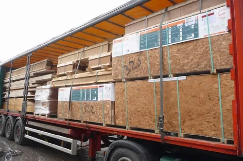 Транспортировка домокомплекта из двутавра, за счет компактности системы конструкций – дом среднего размера помещается в одну фуру.